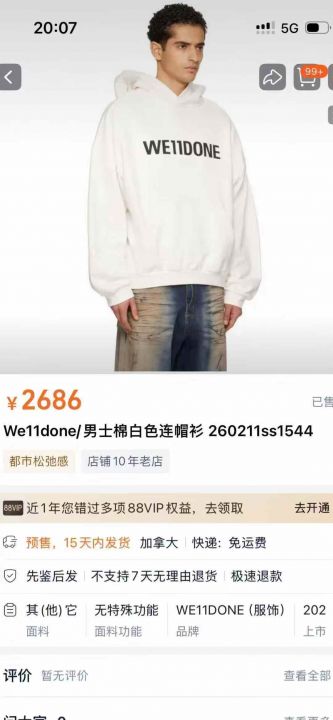 4000多件WELL DONE卫衣400多克重。 货号:32539...