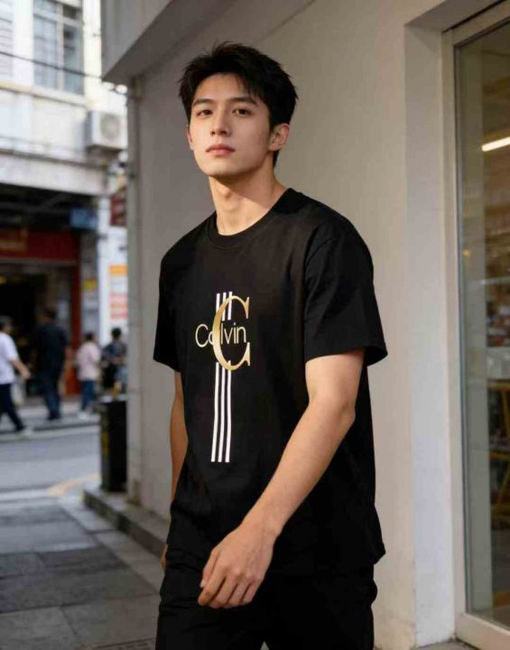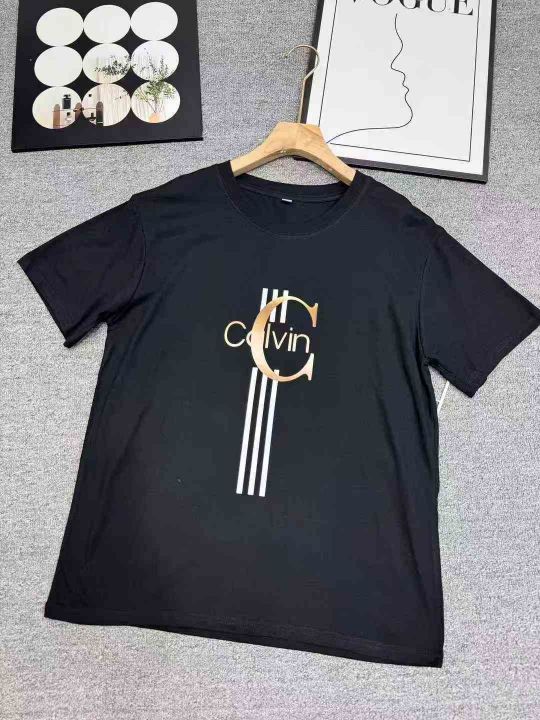 400件\'夏季潮牌Calvin字母印花短袖T恤男三条杠宽松圆领半袖ins潮流上衣,独立包装\'码数S-2XL,分货➕1,货号001#31