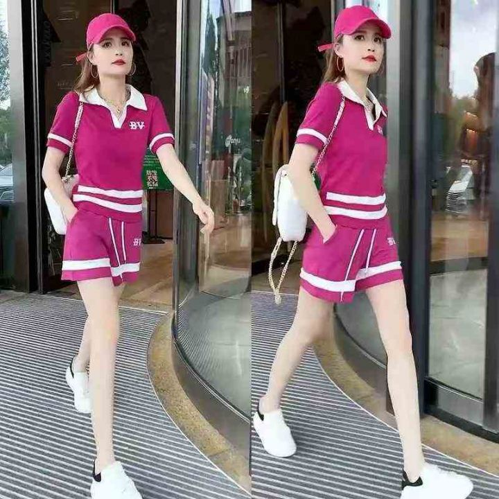 运动风翻领短袖套装女款121套,全清9.8元,正品独立包装,三个颜色,码数:S到XXL,炸街运动风套装女2026夏季新款洋气高端休闲短裤两件套潮