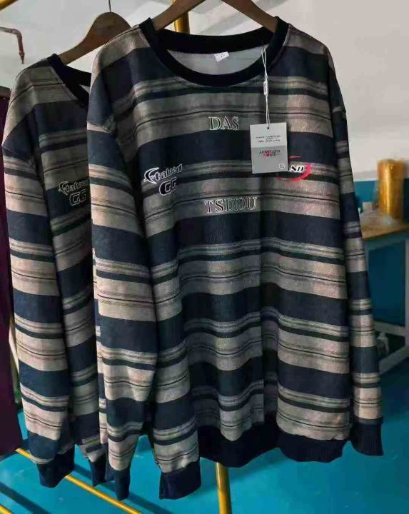 大码潮牌没计感大版型宽松痞帅鱼鳞布印花条纹卫衣,285件,M-2XL,后领包边,版型宽松够大,男女同款,独立包装吊牌,全清6.8元,分货+0.5