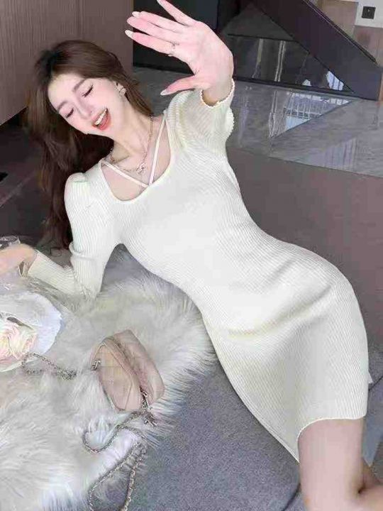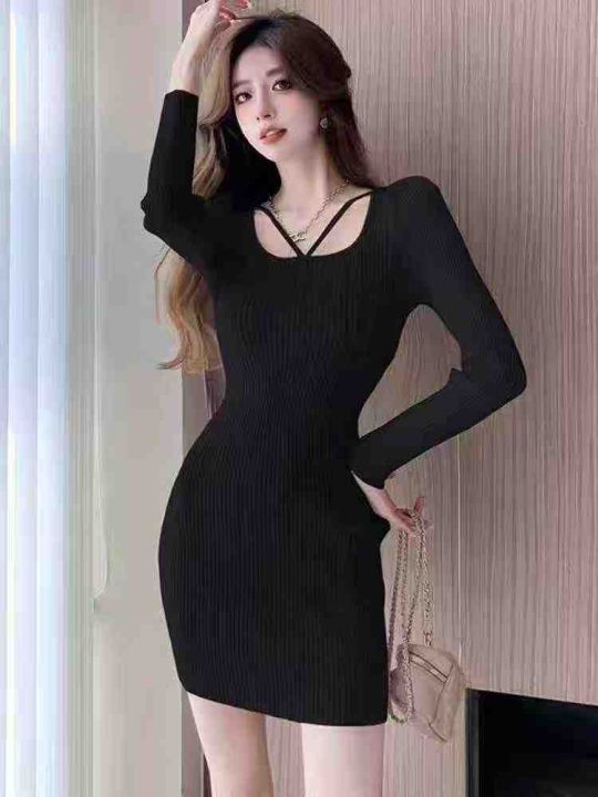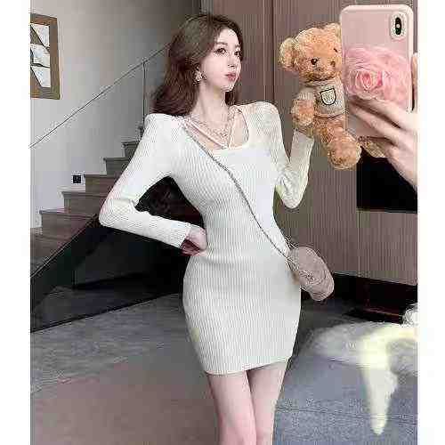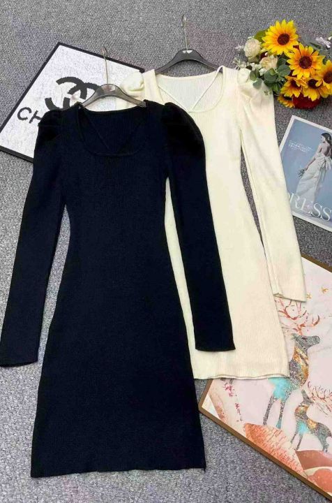 捡漏款,春季新款弹力修身韩系方领泡泡袖气质纯欲风修身包臀针织毛衣连衣裙,独立包装,均码面料柔软舒适弹力大,90件左右,全清8.9元超低价秒杀!
