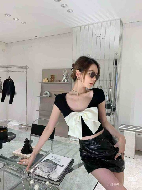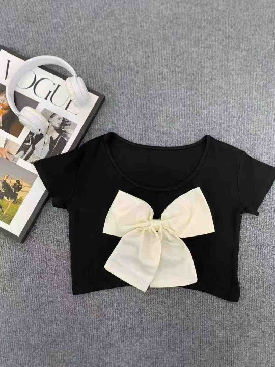 蝴蝶结辣妹T 184件,全清6.8元,正品独立包装,码数M到XL,欧若风2026蝴蝶结打底设计法式新款夏季显瘦短袖T恤修身上衣气质