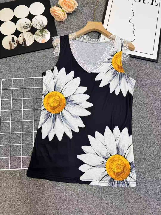 全清价3.5242件\'外贸出口尾货休闲吊带背心新款V领印花无袖上衣,独立包装...