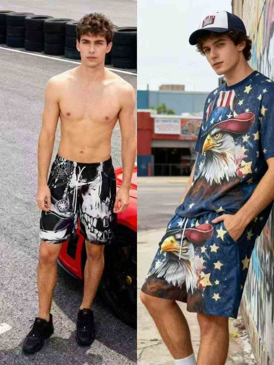 新款欧美潮流3D数码印花宽松休闲短裤,独立包装,码数...