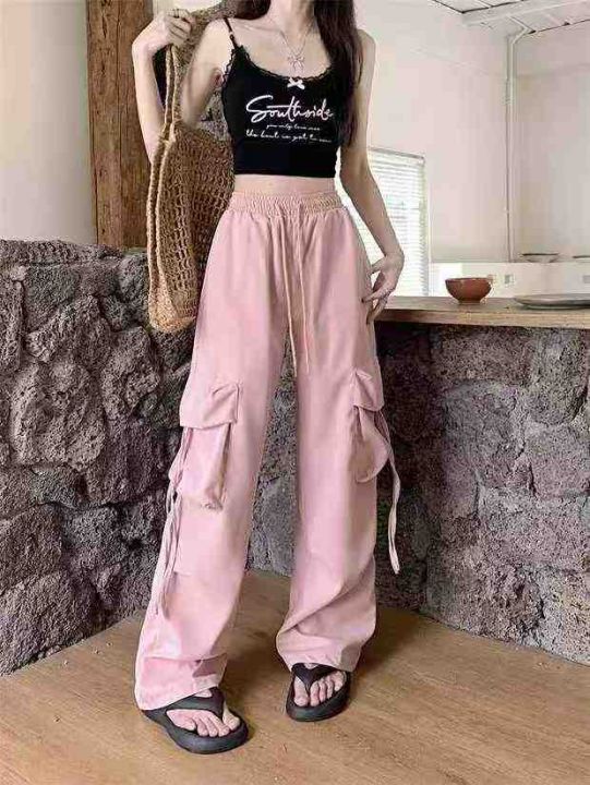 阔腿工装长裤女 400条,全清9.8元,分货10.8元,正品独立包装,两个色,码数:S到XL,高腰垂感阔腿裤女春夏季胖mm显瘦宽松降落伞美式速干工装裤子