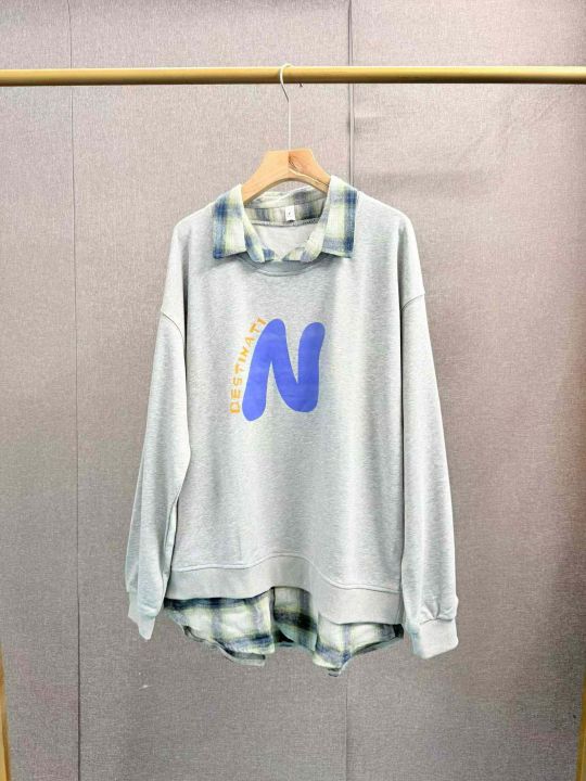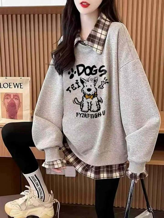 格子拼接假两件新款卫衣少女春秋季初中高中学生宽松洋气,纯棉毛圈,独立包装,S _3 x码,800件左右,清8.8