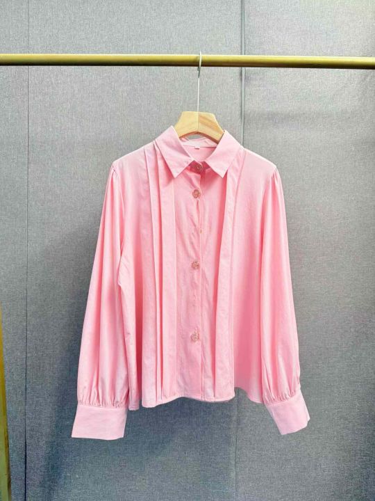 粉色长袖衬衫早春新气质显瘦上衣小众设计感甜美小衫,独立包装,S -2 XL码,180件左右,全清7.8