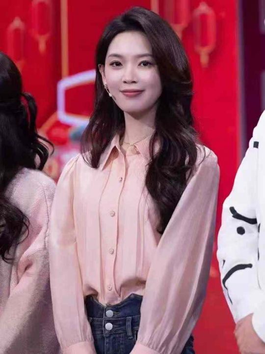 粉色长袖衬衫早春新气质显瘦上衣小众设计感甜美小衫,...