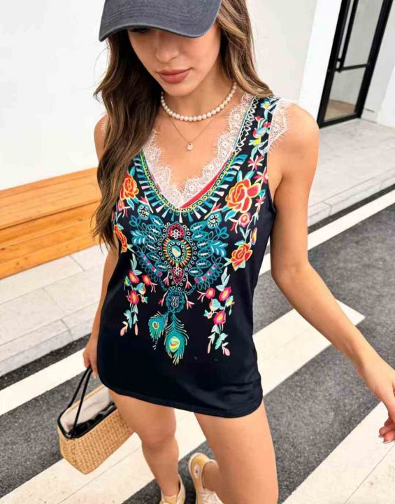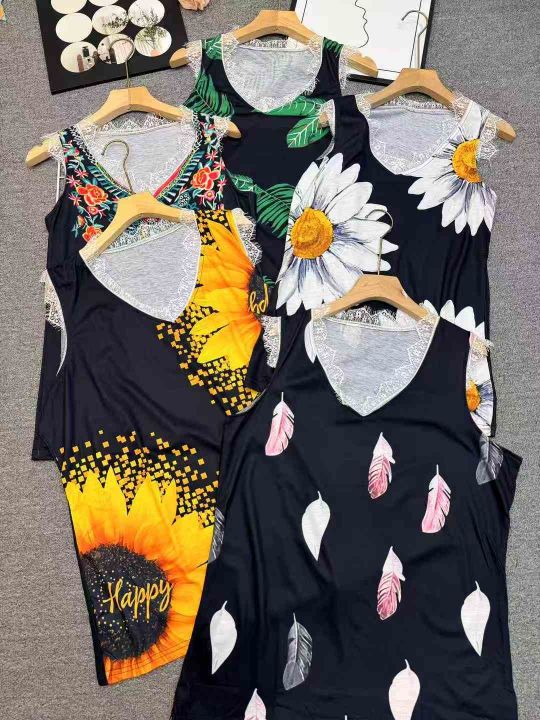 242件\'外贸出口尾货休闲吊带背心新款V领印花无袖上衣,独立包装,码数S-5XL,分货➕1,货号001#30