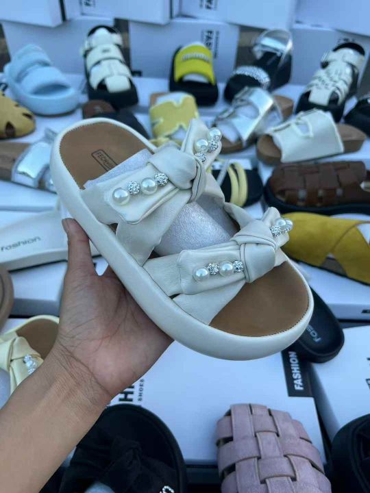 轻奢款3色竖纹厚底踩屎感拖鞋1300双,独立膜袋包装,36~43码,珍珠白/青草...