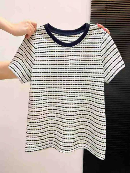☕️网络爆款大整款纯棉短袖T恤3000件全清8.8元,分货9.8元,码数M到XXL,正品独立包装,单款单色,时尚百搭减龄别致小众高级感上衣女夏季今年流行纯棉条纹正肩短袖T恤