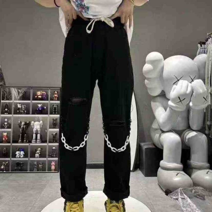 潮牌男女同款链条牛仔裤28条全清14.8元,正品独立包装,码数XXL-3XL,每条带吊牌,潮牌新款链条牛仔裤休闲裤男女宽松精神小伙阔腿裤情侣百搭直筒裤