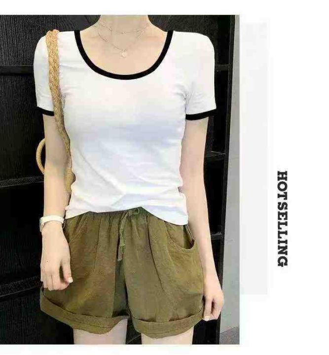 黑白色拼接圆领短袖 85件,全清6.8元,码数:(S到XXL)图片色,十件一个包装,网红拼接撞色短袖T恤女2026夏季新款性感修身圆领百搭上衣