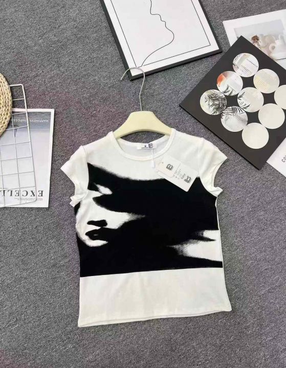 ☕️辣妹撞色白色小飞袖正肩短袖t恤女夏季纯棉修身显...