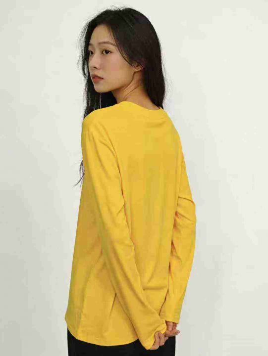 2.9清电商仓回收689件柠檬黄纯色舒适打底长袖T恤,码...