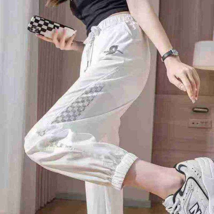 [月亮]:6.9秒杀清196件(不分货)[月亮]:网纱镂空拼接/束脚抽绳休闲裤[月...