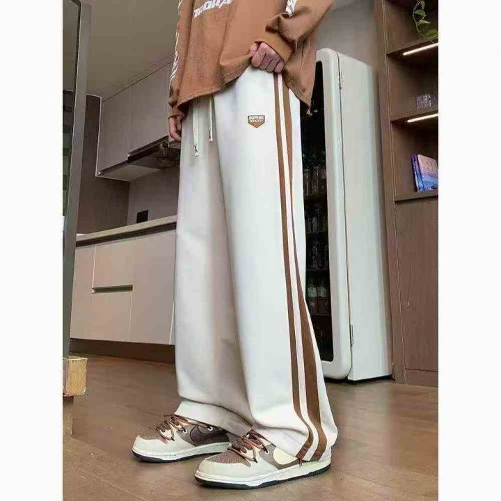 条纹运动卫裤春季宽松阔腿长裤潮流百搭休闲直筒裤,独...