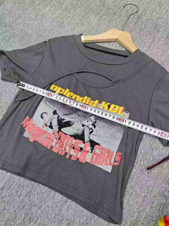4.5清电商仓回收192件美式复古辣妹镂空印花设计感短袖...