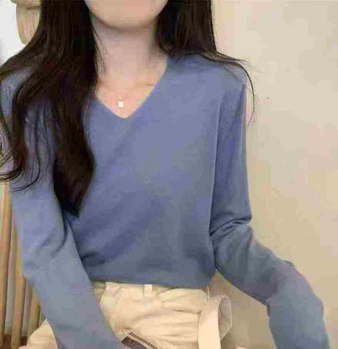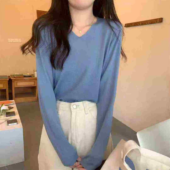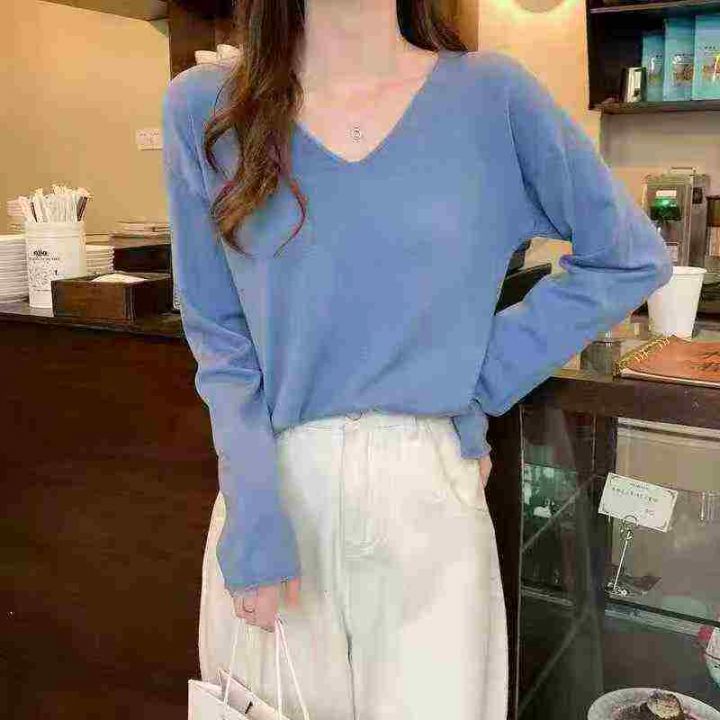 上新全清:2.8一件韩版V领设计感遮肉宽松百搭长袖上衣...