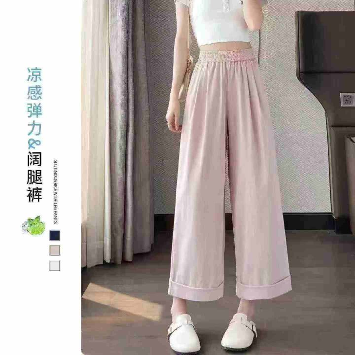 山本阔腿裤女夏季薄款高腰宽松卷边小个子九分直筒裤,...