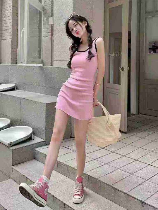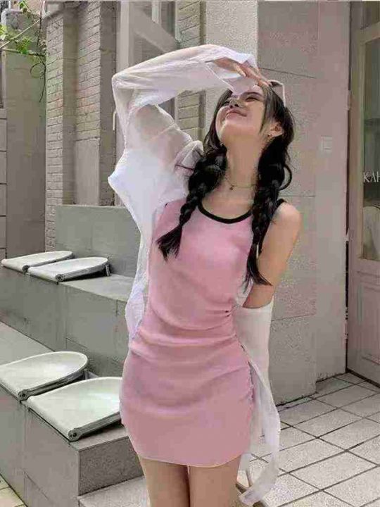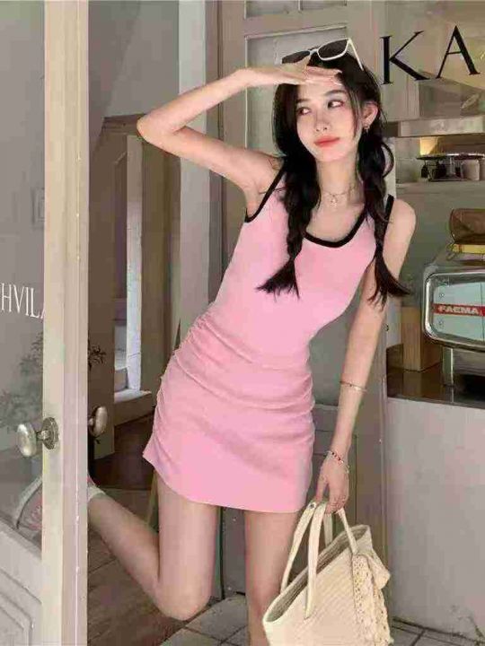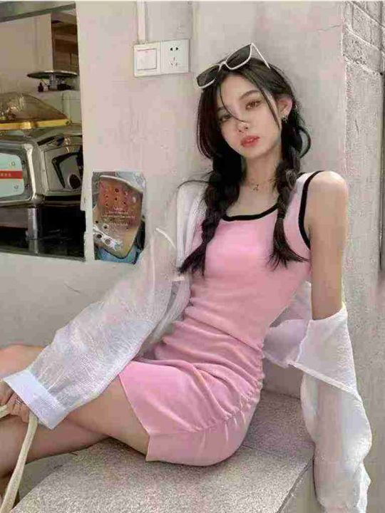 显身材小众气质无袖背心内搭连衣裙粉色清纯U领紧身吊带包臀裙夏,独立包装,350件,清8.8,分➕0.5