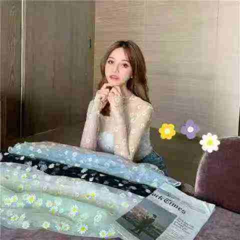 430件小雏菊网纱打底衫蕾丝t恤靓妹款夏季防晒叠穿纱衣上衣长袖内搭体恤潮,...