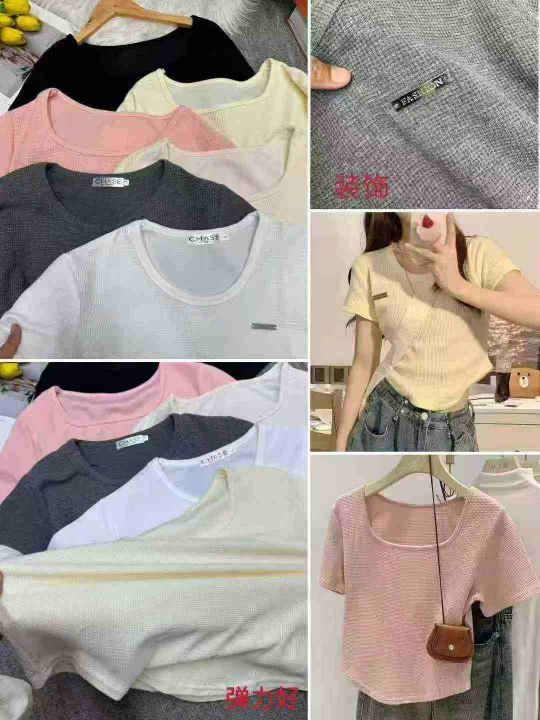 华夫格不规则正肩短袖t恤设计感小众修身短款上衣ins潮,独立包装,码数2-7,数量1227件,分货加1,货号121#42
