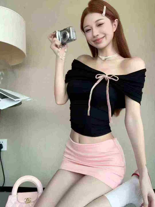 甜欲棉质辣妹一字领上衣599件7.8面料柔软有弹力,绑带...