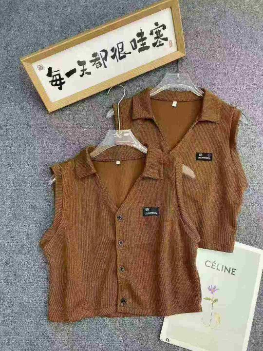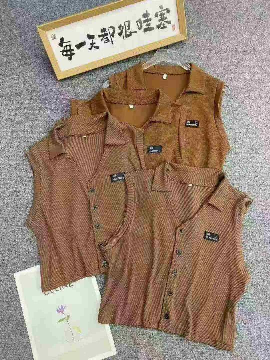 美式复古靓妹背心217件5.9Polo领,胸口小标,两种面料...