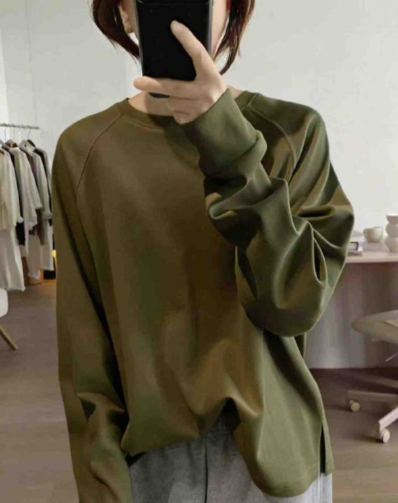 春季新款净版简约宽松大版下摆开叉设计款纯棉毛圈卫衣...