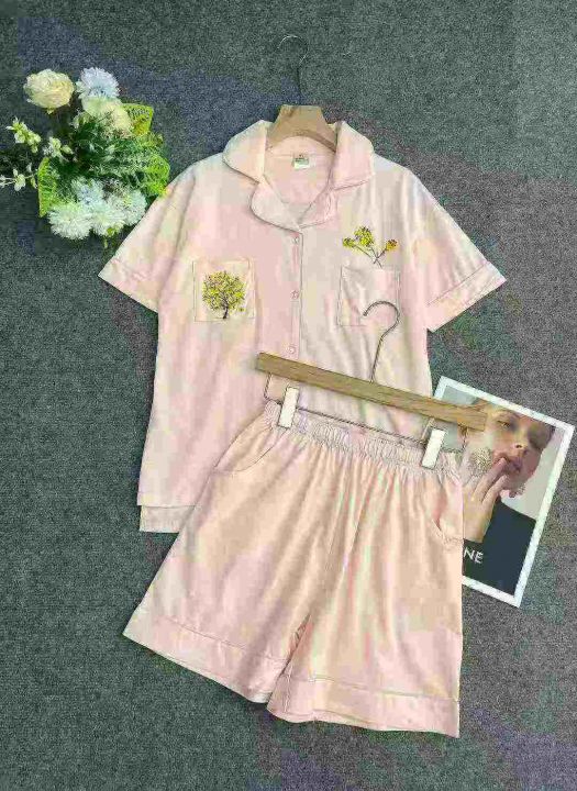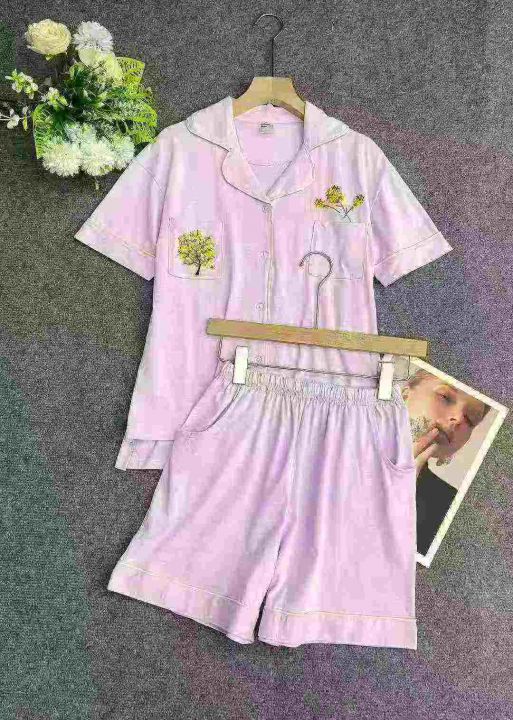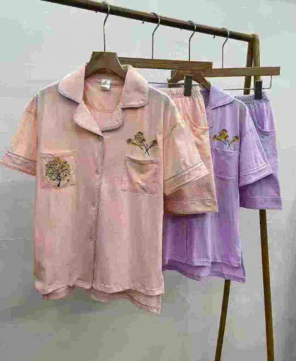 400套纯棉刺绣居家休闲套装。整款两个色,上衣不对称...