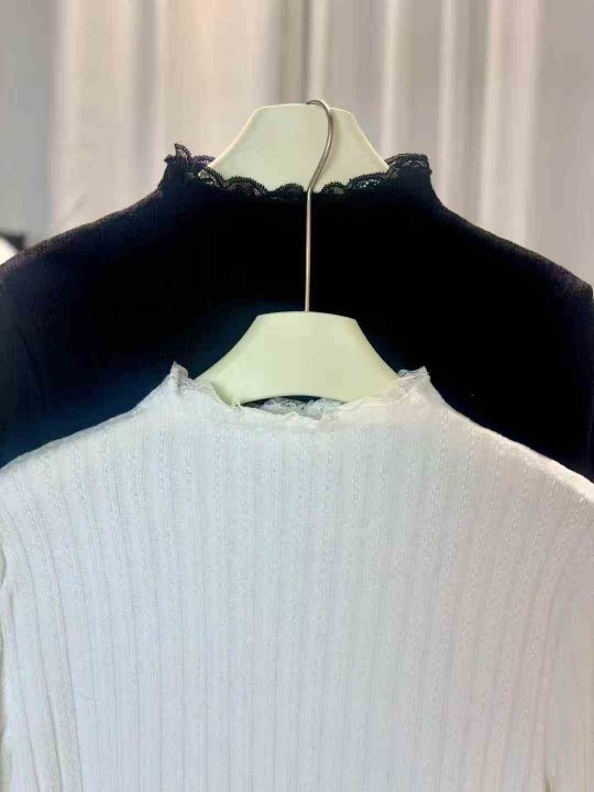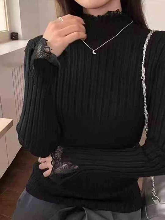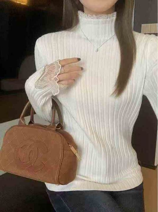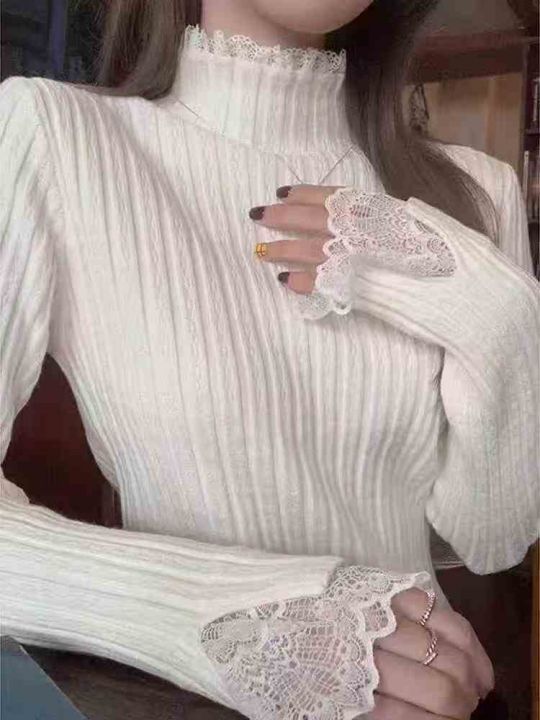 200件左右纯欲甜美蕾丝花边打底衫女春秋法式半高领毛...