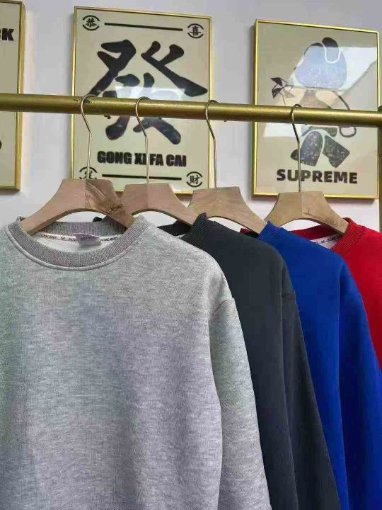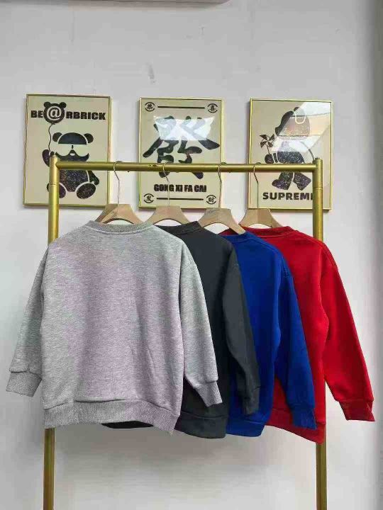 天猫在售款2000件左右高品质秋冬加绒加厚男女同款中大童纯色圆领华棉卫衣,码数120-170,单款四色(红色少),内里加超柔BB绒,后领包边过肩,十件一包装