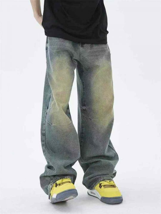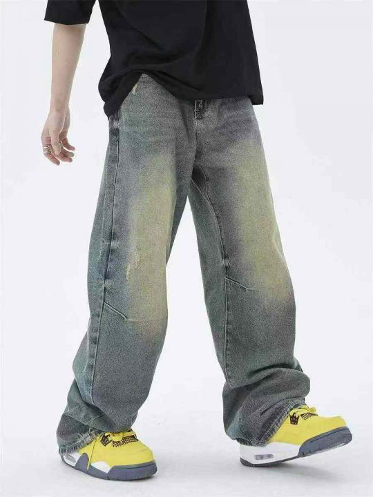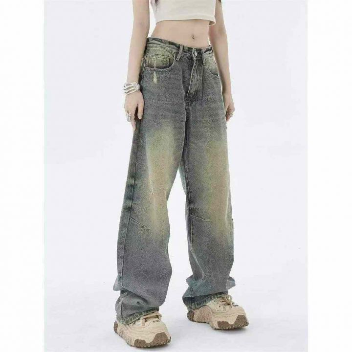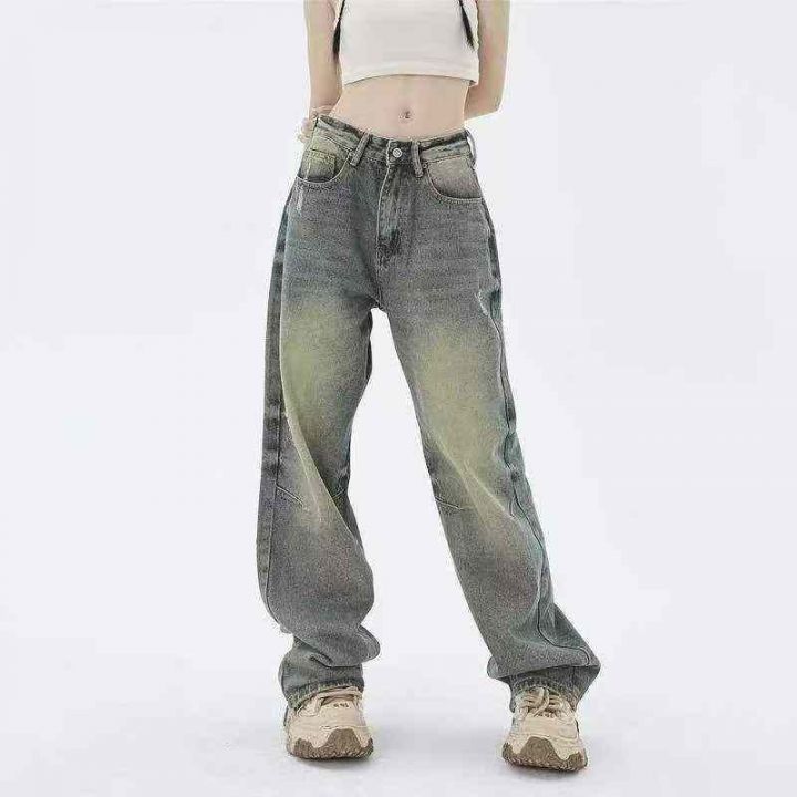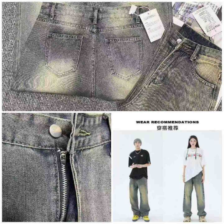 春季新款男女同款网红复古洗水棉牛仔直筒阔腿裤,独立...