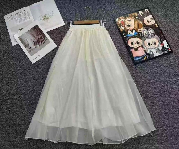 天猫在售款130件左右高品质夏季小个子白色网纱温柔风半身仙女A字裙,码数L-XL,有内衬,独立包装带吊牌