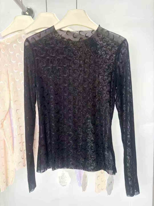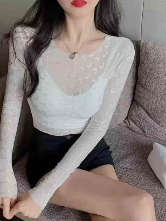 175件月亮网纱打底衫女夏季薄款圆领长袖t恤上衣冰丝内...