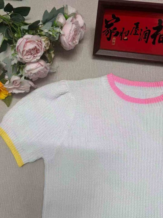 洋气甜辣撞色针织短款T恤短袖·单款单色40件独立包装...