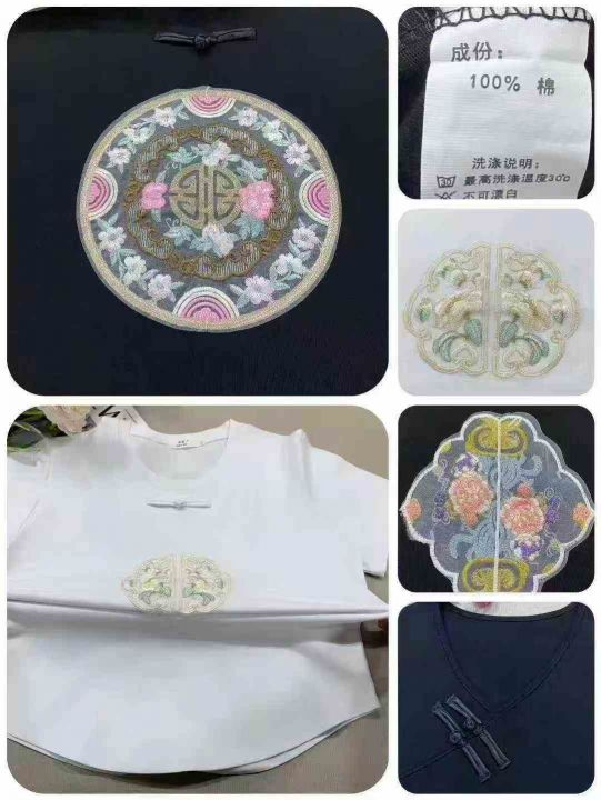 1625件国风重工刺绣中式盘扣拉架棉短袖T恤女,以黑色...