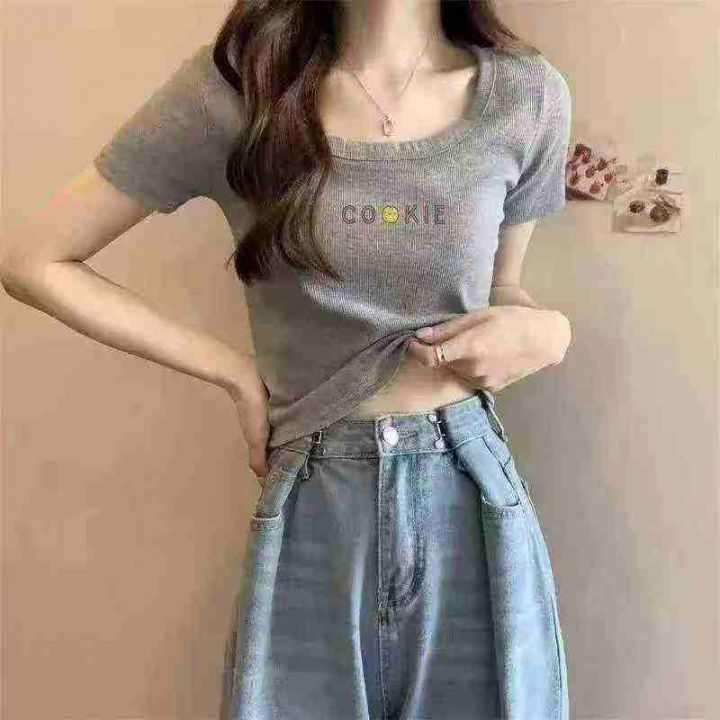 全清价6.5精梳螺纹正肩短袖T恤女甜辣风修身短款辣妹上...