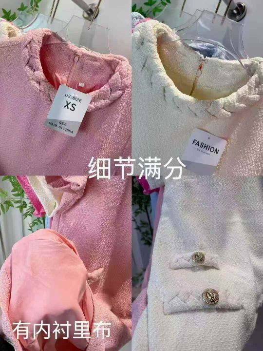 高品质小香风大码女装连衣裙,数量4426件,单款多色,码数XS-L,⚠️欧美码数,版型比内销版要偏大3个码,胖MM的福利,做工精致,内里有内衬布,全部箱装,颜色码数已分装,大货整洁漂亮,独立包装吊牌,分货➕1