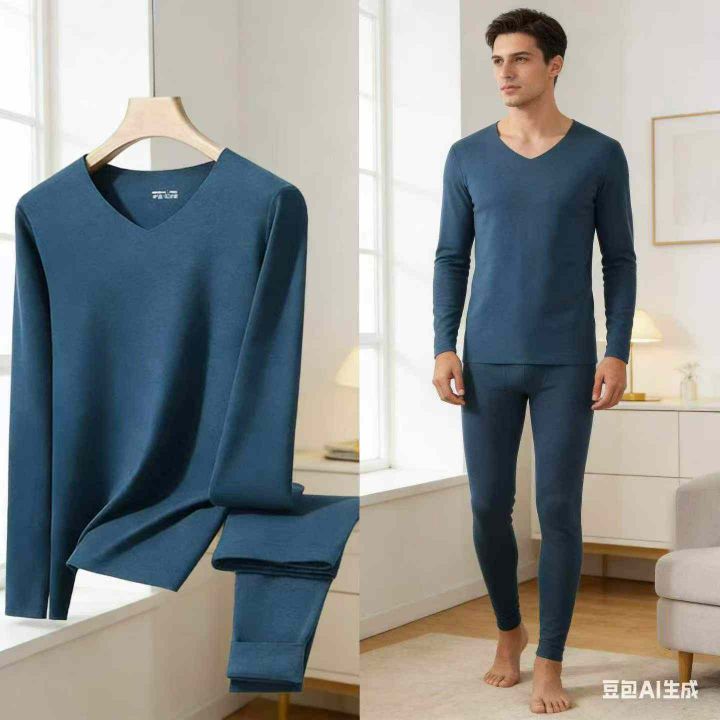 全清6.9,德绒V领男士保暖套装,两个颜色。...
