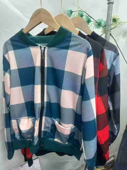 妈妈装圆领拉链夹克开衫春秋款,百搭格子款外套,加绒/不加绒各一半左右,整款3色,独立包装,3.5.6.8码,1060件左右,5.8元清分货➕1