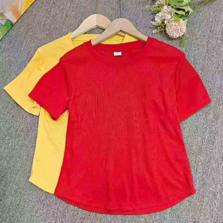 新款不规则短袖复古气质圆领修身弧形下摆螺纹T恤女,整款4色,有后领包边,1-5码,独立包装,弹力超大,900件左右,5.8清,分加1