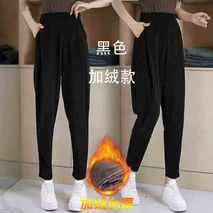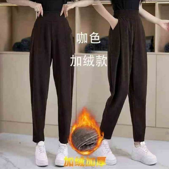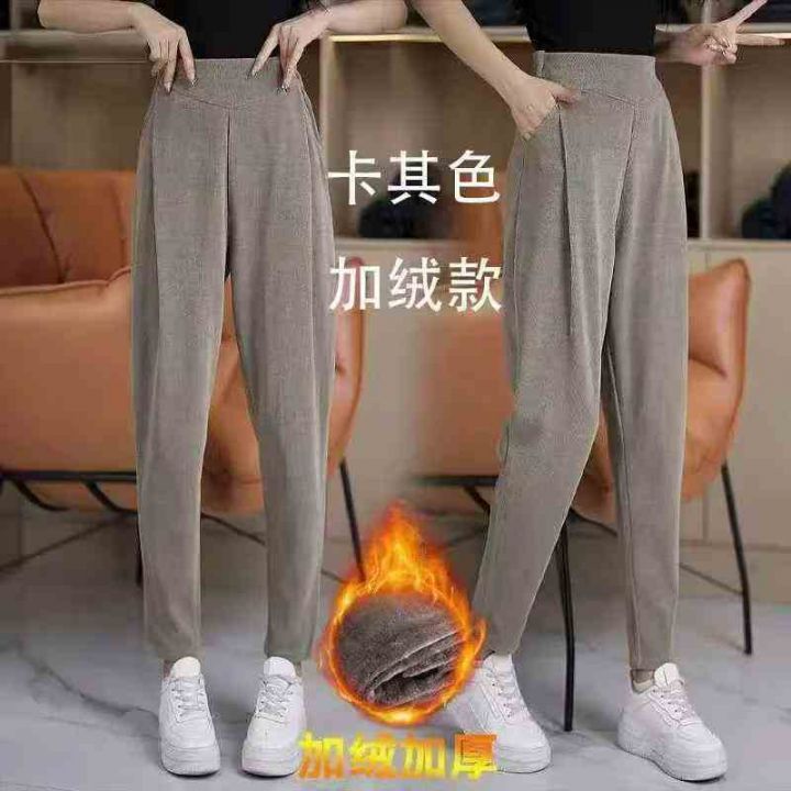 加绒加厚修身哈伦裤女秋冬新款高腰显瘦休闲裤小脚裤,...
