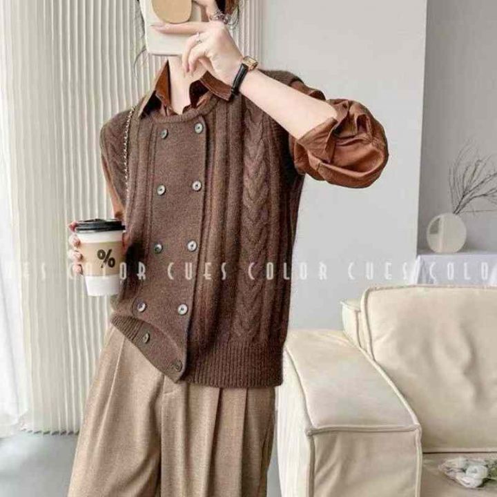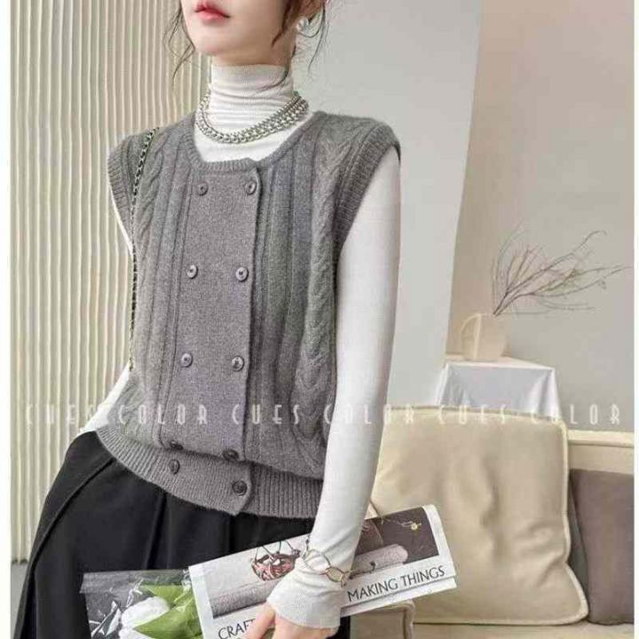 圆领针织开衫马甲背心女宽松外穿上衣麻花毛衣坎肩潮,独立包装,341件,清6.8,分➕0.5