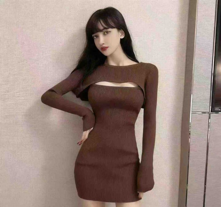 春季新款高弹力修身显瘦纯欲辣妹风性感镂空针织吊带连衣裙2件套,独立包装,均码面料柔软舒适弹力大,716套,全清7.9元超低价秒杀!分货加一!