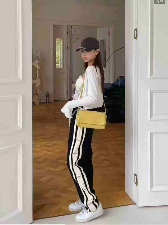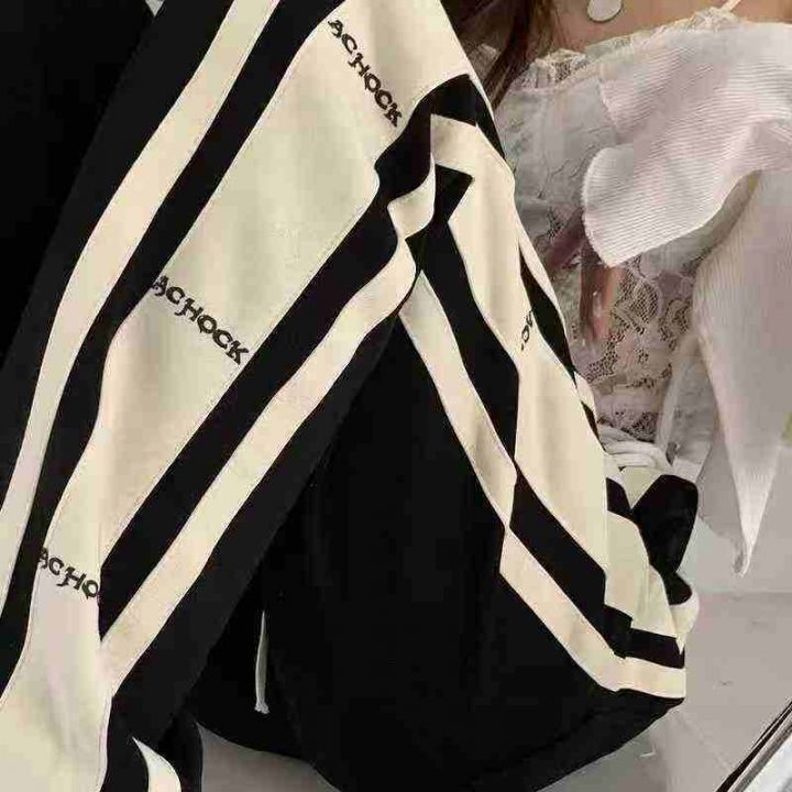 美式高街直筒裤宽松运动裤高腰卫裤垂坠感休闲长裤数...