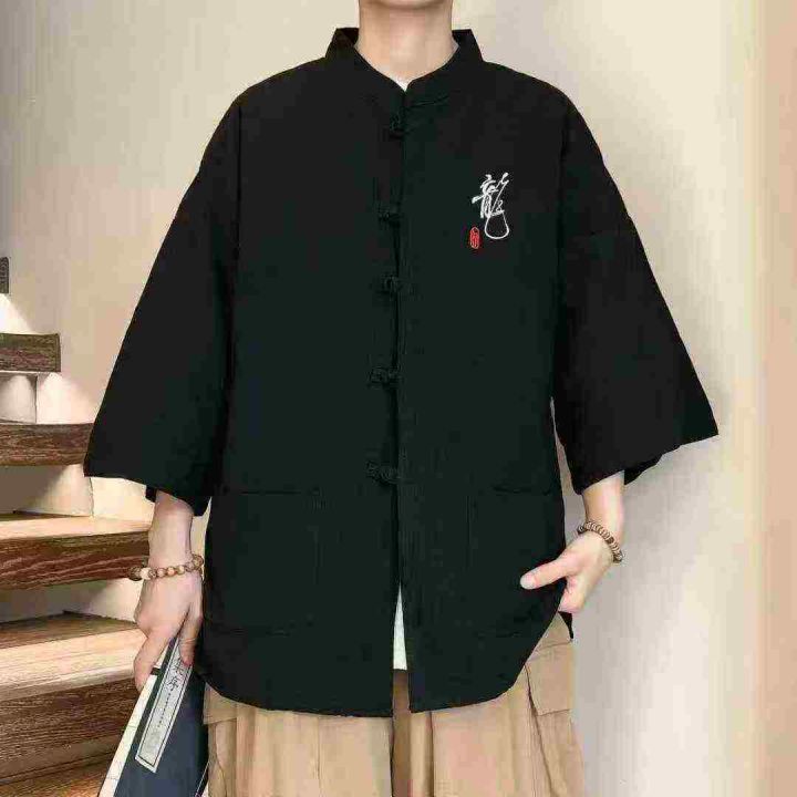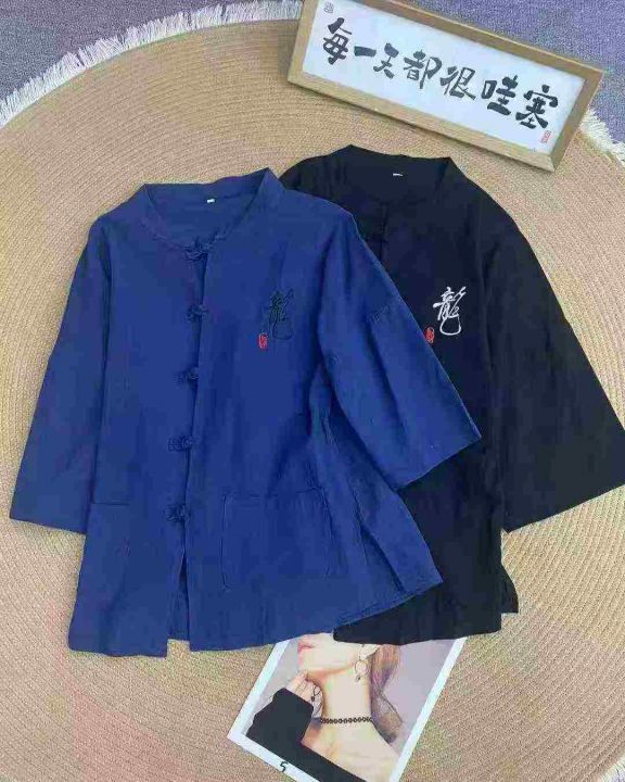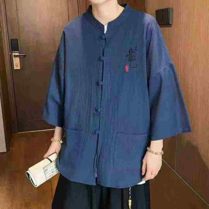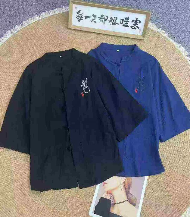 新中式唐装棉麻短袖衬衫59件6.5,盘扣七分袖,古风刺...