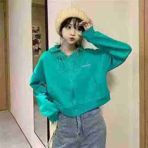 天猫在售款195件左右高品质春秋靓妹款棉质bf宽松连帽短款开衫卫衣外套,单款单色,M-XL,独立包装