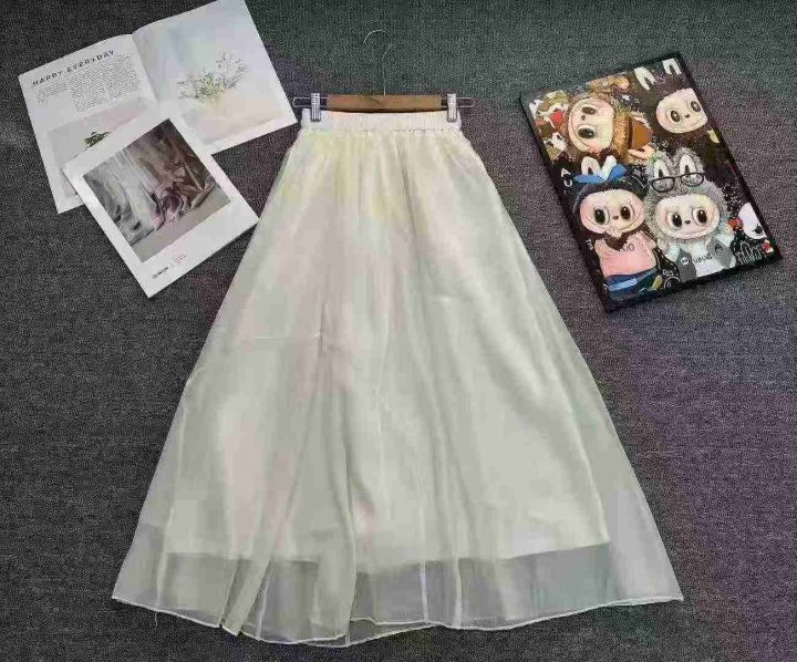 天猫在售款130件左右高品质夏季小个子白色网纱温柔风半身仙女A字裙,码数L-XL,有内衬,独立包装带吊牌